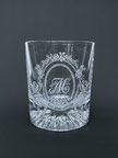 底部がクリスタルカットの、程よい重量感のあるグラスに、バラをあしらったラベルをデザインし、イニシャルを彫刻してみました。 ・サイズ 75mm×高さ85mm