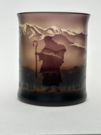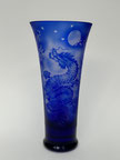 ピンクの被せグラスに、ユリの花3態を彫刻してみました。花名のユリは、細い茎に大きな花を咲かせるユリが風に揺れる様子から「揺すり」と呼ばれ、それが変化して「ゆり」になったともいわれます。