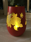 シュトルツル ラウジッツ社製(ドイツ)のクリスタルタンブラーに、ゆりをサンドブラストしました。レッド&ブラックの2色の表面塗装で、オーガニック(有機)の塗料を塗布しているのでご安心下さい。